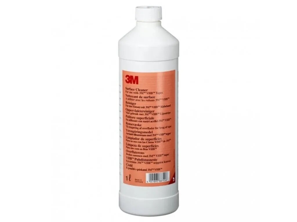 3M čistič povrchů VHB se skládá ze směsi izopropylalkoholu a demineralizované vody v poměru 90:10. Tento čistič se může používat na různé podklady, jako jsou kovy, plasty nebo lakované povrchy, avšak vždy je nutné předem ověřit kompatibilitu.