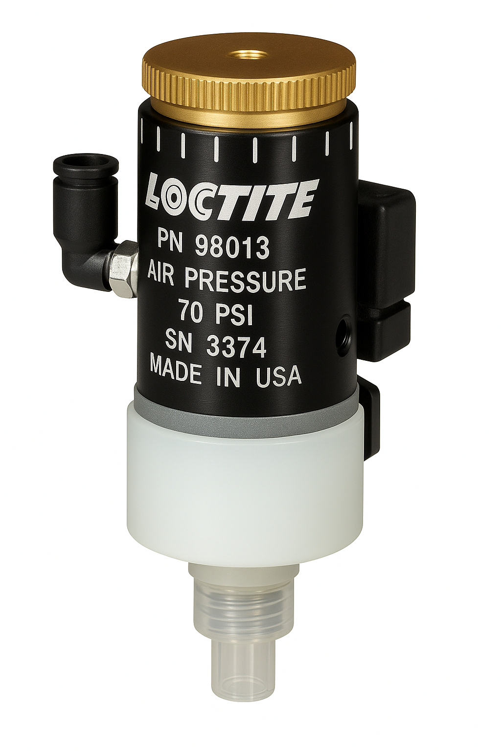 Dávkovací ventil Loctite 98013 umožňuje vysoce přesné nastavení zdvihu, a díky tomu přesné nastavení požadovaného průtoku. Umožňuje přesné dávkování kyanoakrylátových produktů LOCTITE bez bublin a odkapávání. Jejich jednoduchá konstrukce bez těsnění usnadňuje opravy v terénu. Každý z nich má malý profil o průměru 2,28 cm (0,9") a délce 6,35 cm (2,5").