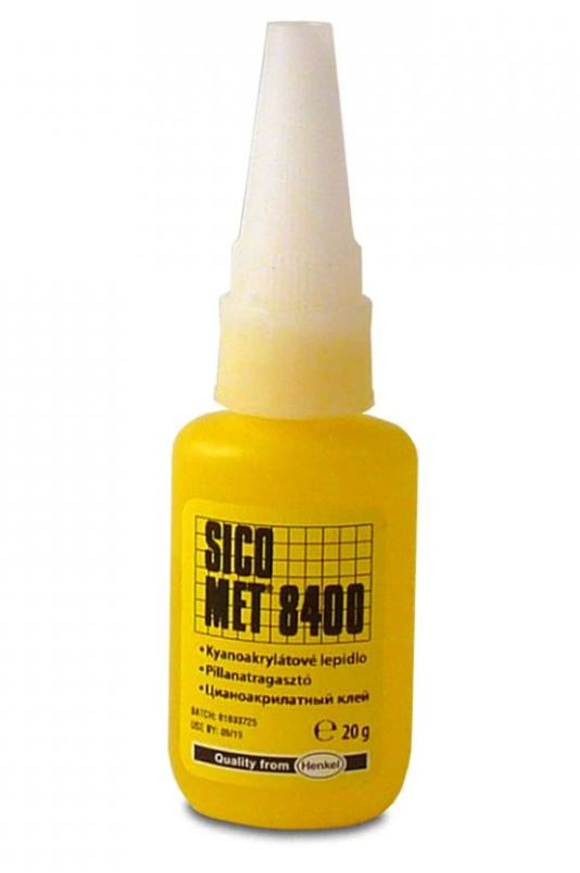 Sicomet 8400 je velmi rychle vytvrzující lepidlo pro lepení plastů, pryže, pryžových profilů, šňůr a výlisků. Vyznačuje se střední viskozitou. Je obvzláště vhodný pro lepení plast - elastomer, plast - plast. Vynikající také při lepení porézních látek, jako je pěnová pryž.