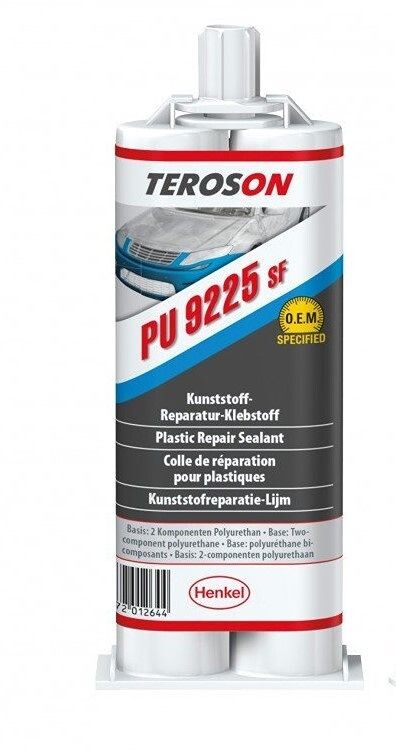 Teroson PU 9225 SF je dvousložkové polyuretanové rychle vytvrzující lepidlo pro opravy. Typicky se používá k opravám na lakovatelných interiérových a exteriérových plastových dílech, zejména na menší poškození, jako jsou škrábance nebo díry v náraznících, spojlerech, krytech atd.
